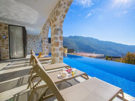 Kalkan'ın huzur dolu atmosferinde, İslamlar bölgesinde bulunan Villa Royal 3, muhteşem deniz ve doğa manzarasıyla benzersiz bir konaklama deneyimi sunuyor. Bu taş mimariyle inşa edilmiş villa, 3 yatak odası ve 6 kişilik kapasiteye sahiptir, böylece aileniz veya arkadaş grubunuzla unutulmaz bir tatil geçirebilirsiniz. Villa, panoramik deniz manzarasına sahip olup, doğanın güzelliklerini gözler önüne seriyor. Özellikle süit aile yatak odasında bulunan özel jakuzi, konuklara maksimum konfor ve lüks sunuyor. Muhafazakar yapısıyla da dikkat çeken Villa Royal 3, korunaklı bir ortamda tatil yapmak isteyen aileler ve arkadaş grupları için ideal bir seçenektir. Denizin uzaktan görünen manzarasıyla çevrili bu muhteşem villa, huzur ve lüks arayanların tercihi olmaya aday. Kalkan'ın eşsiz doğasıyla iç içe, konforlu bir konaklama için Villa Royal 3'ü tercih edin ve unutulmaz bir tatilin tadını çıkarın.